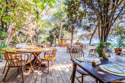 Одной из главных достопримечательностей заведения является большая пляжная территория, разделённая для удобства отдыхающих на три зоны. Такой отдых на фоне морских волн обеспечивают самые комфортабельные бамбуковые шезлонги с мягкими накладками, пуфики большого размера, а также кафе с прохладительными напитками и вкуснейшими снеками. Также здесь установлен медицинский и спасательный пункты, есть раздевалки, душ и туалет. Среди развлечений представлены все виды водного транспорта и есть возможность записаться на морскую прогулку.