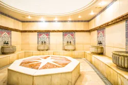 Хамам, или турецкая баня, в отеле представляет собой традиционную парную с высокой влажностью и температурой. Посещение хамама способствует глубокому очищению кожи, улучшению кровообращения и расслаблению мышц. В комплексе также имеется купель с холодной водой для контрастных процедур, что усиливает эффект оздоровления.
