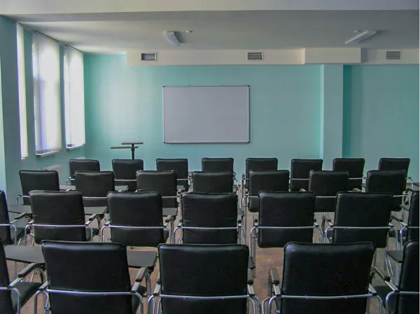 - Конференц-зала. Он подходит для небольших или средних мероприятий. Вместимость зала составляет 40 мест. Помещение дарит чувство уединенности, здесь царит деловая рабочая обстановка. Кресла в конференц-зале можно устанавливать в любом порядке. Также большим преимуществом является естественное освещение и современное оборудование зала.