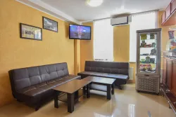 Кроме основного питания в столовой, гости здравницы могут отдохнуть и насладиться вкусными закусками и напитками в лобби-баре. Он находится в холле, рядом с администрацией. Гостям предлагаются легкие закуски, десерты, чай и кофе в ассортименте.