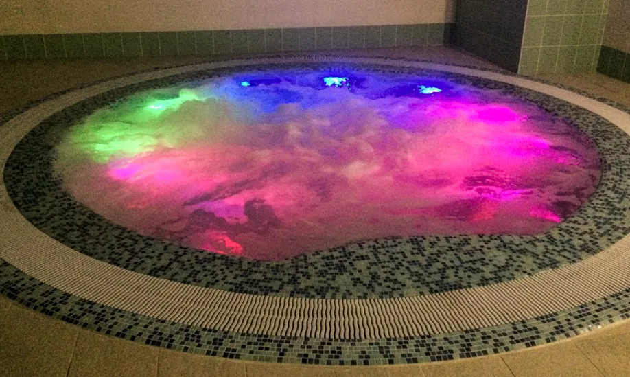 Температура в помещении установлена в пределах 31°С, а вода в резервуаре поддерживается на 28°С. Она непрерывно очищается и обеззараживается с помощью системы фильтров, деликатных реагентов (без хлора) и уникального ультрафиолетового излучения. Бассейн работает всегда, вне зависимости от сезона на Алтае.