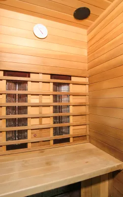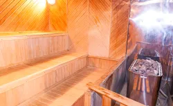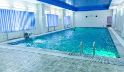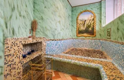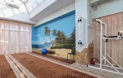 Получить удовольствие не только для души, но и тела можно в большом банном центре, расположенном в здании санатория. Также здесь находится крытый бассейн длинной в 19 метров. Любители русской бани отдадут предпочтение классической парилке, а для ценителей восточных водных процедур предусмотрен хаммам.