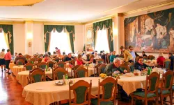 Санаторий «Орбита 2» в Подмосковье располагает собственной столовой, предлагающей шикарное питание для всех отдыхающих. Просторное и светлое помещение с уютным интерьером сделает каждый приём пищи изысканным мероприятием.