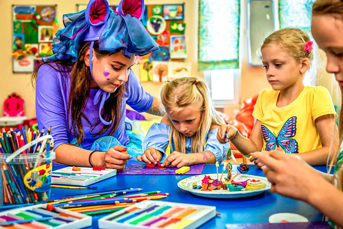 - Каждый день в детском клубе проходят тематические игры и квесты, которые увлекают детей и дарят им массу положительных эмоций. А также дети могут попробовать себя в различных видах творчества, таких как рисование, лепка или рукоделие.