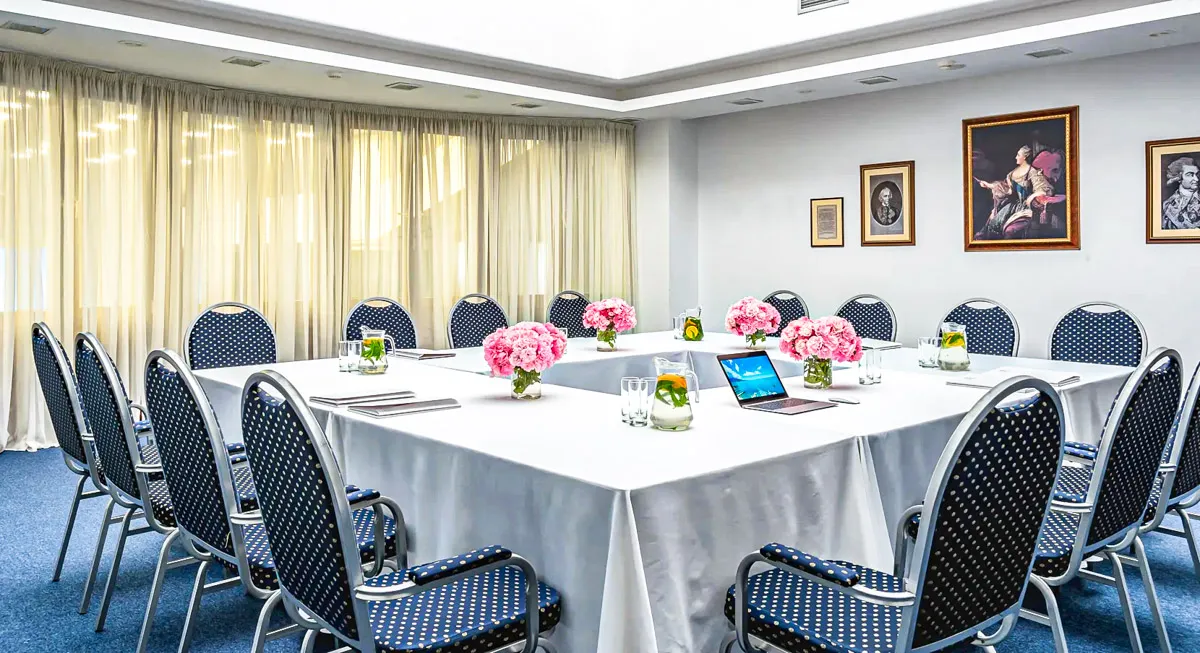Для тех, кто ищет широкий спектр бизнес-услуг, идеально подходящих для проведения любых общественных мероприятий, а также семейных торжеств, отелю «Пальмира Палас» в Ялте есть что предложить. Уникальное расположение на берегу моря и рядом с невероятно красивыми природными и архитектурными памятниками обеспечивает высокий уровень комфорта и профессионального обслуживания. Оборудованные современной техникой для проведения мероприятий любого уровня, конференц-залы вмещают большое количество людей. Залы могут быть адаптированы под различные форматы, включая театральную рассадку, класс или U-shape.