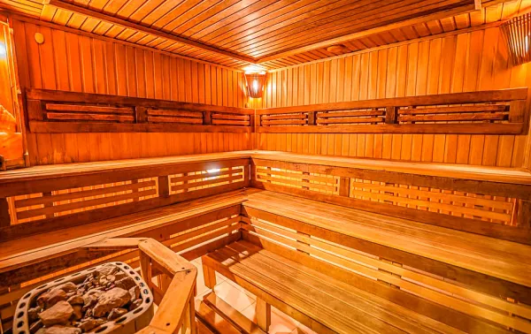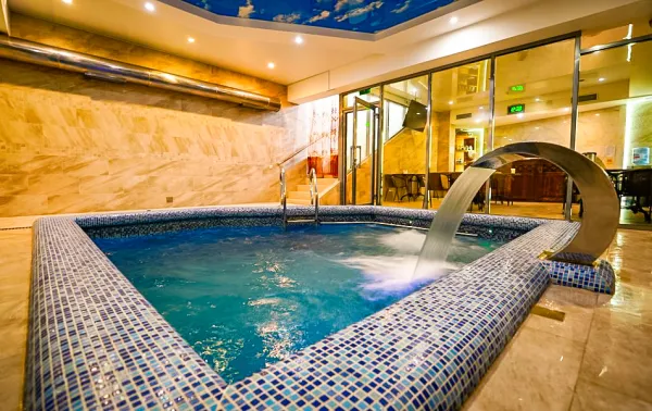 Отель «Панорама» г. Кисловодск имеет на своей территории полноценный SPA-центр. В него входят сауна, купель, подогреваемый бассейн, хаммам. Бассейн оснащен гидромассажным оборудованием, что сделает ваше плавание ещё и расслабляющим. Турецкая баня хаммам внутри облицована натуральным мрамором. Здесь достигается температура воздуха 40 – 55°С при влажности до 70%. В сауне вы сможете ощутить на себе температуру до 95°С. Это сухая сауна, поэтому отдыхающим с астмой она может быть не очень комфортной. Также в помещении оборудована купель с температурой воды 20°С. Сюда можно будет окунуться после сауны или хаммама.