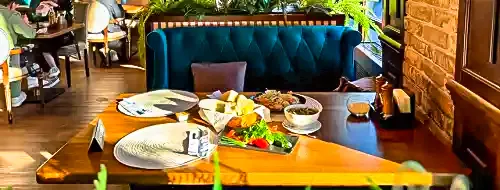 В шаговой доступности находится кафе национальной кухни, где выпекают хычины и готовят другие блюда кавказской кухни. Также рядом с гостиницей открыто несколько ресторанов и кафе преимущественно русской и кавказской кухонь. Но есть и сетевые рестораны быстрого питания, которые открыты практически во всех городах России. Поэтому вы сможете как попробовать что-то новое, так и насладиться привычными блюдами.