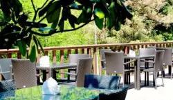 На территории парк-отеля в теплое время года действует кафе «Шале». Заведение находится на открытой террасе с видом на море. В меню есть закуски, десерты, коктейли, алкогольные и безалкогольные напитки. Регулярно по вечерам в кафе проводятся дискотеки для детей и взрослых, 2 раза в неделю организовываются вечера с живой музыкой.
