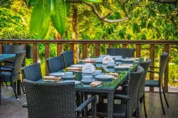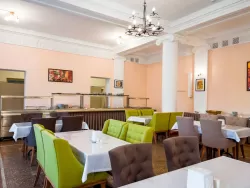 В парк-отеле «Небуг» предоставляется 3-разовое питание по принципу «шведского стола». Оно может быть включено в стоимость проживания. В меню вы найдёте всегда несколько вариантов завтраков, обедов и ужинов. Рацион составлен с преобладанием свежих овощей и фруктов, присутствуют мясные и рыбные блюда, каши на молоке и воде, а также кисломолочные продукты. Если вы хотите питаться иначе, можно выбрать проживание без питания. Для вас в этом случае будут доступны завтраки, обеды и ужины по системе меню-заказ в обеденном зале.