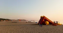 Одним из главных преимуществ является наличие собственного песчаного пляжа, расположенного всего в ста пятидесяти метрах от основной территории. Место для морского отдыха прекрасно оборудовано и имеет всё необходимое для максимального комфорта: шезлонги, зонты, раздевалки, душ и многое другое. Чтобы дети могли безопасно купаться, здесь оборудовали пологий вход в море.