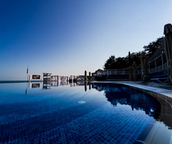В парк-отеле есть шикарный спа центр и два подогреваемых бассейна (взрослый и детский). Большой бассейн оснащен эфффектом Infinity, который заключается в визуальном слиянии края бассейна с морем.