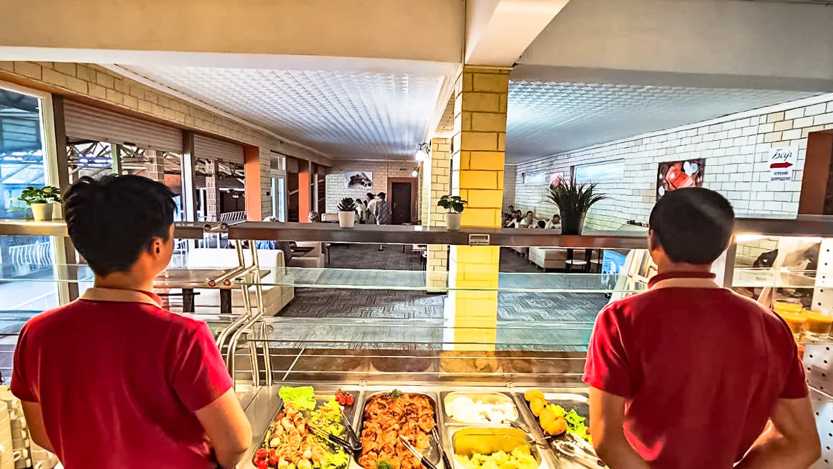 Питание в пансионате «Планета Лета» в пос. Каменское организовано по системе «шведский стол». Подача еды осуществляется в кафе в дневное время суток. Если загруженность отеля небольшая, питание предлагается комплексное заказное.