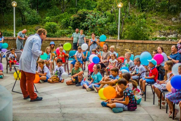 Чтобы самые маленькие гости не скучали и были заняты интересными делами, здесь есть отдельная детская развлекательная инфраструктура. Профессиональные аниматоры надолго займут детей интересными мастер-классами, конкурсами и другими мероприятиями. Ребёнок может поиграть в аэрохоккей или настольный футбол, а также взять интересную книгу с яркими картинками, чтобы почитать на пляже или в парке. На детских площадках установлено множество развлекательных конструкций, в числе которых качели, горки, песочницы и многое другое.
