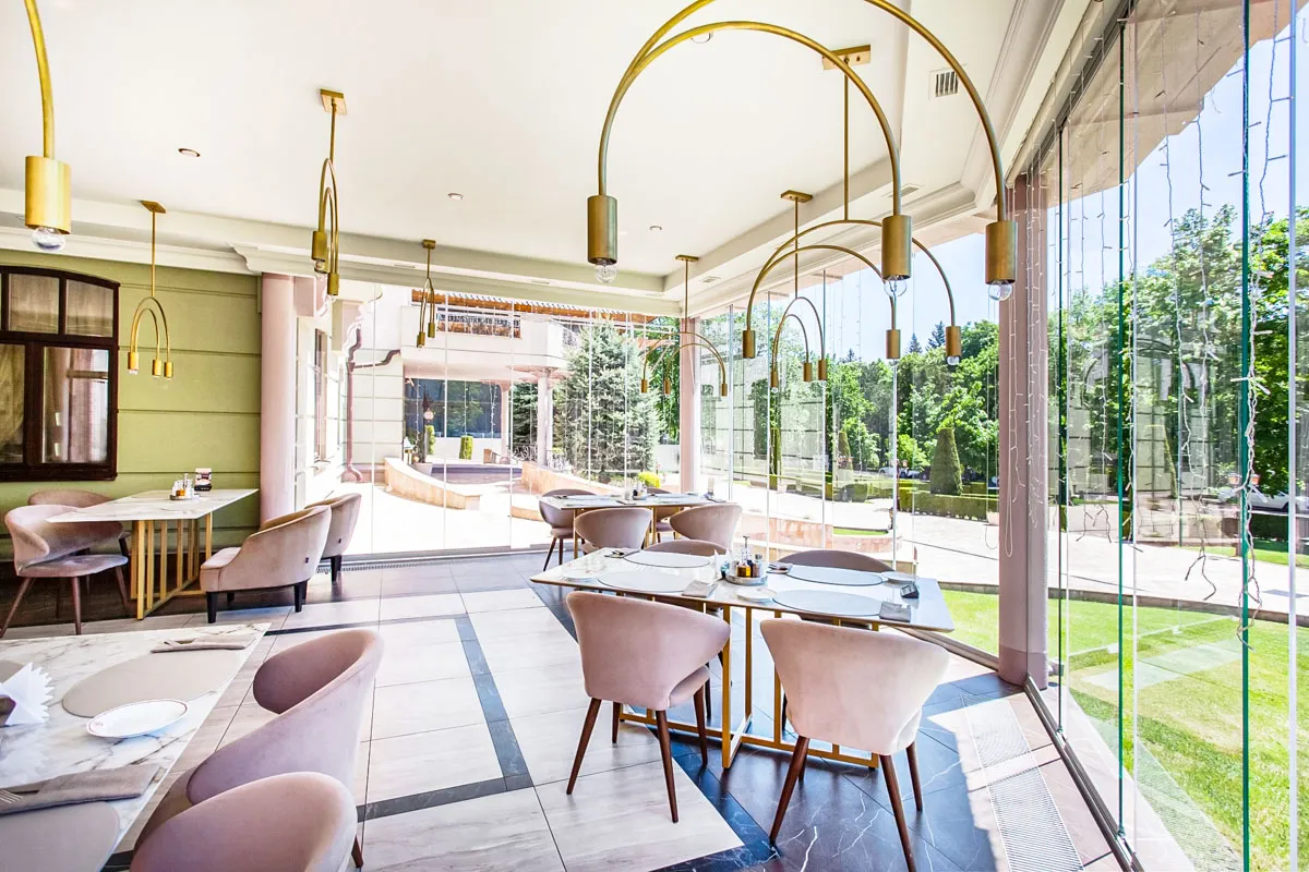 Для гостей, приехавших на собственном автомобиле, предоставляются места на парковке. На территории отеля вы сможете посетить акватермальный комплекс с бассейном, сауной, баней хаммам. Здесь действует косметологический кабинет, где можно воспользоваться услугами массажиста, пройти омолаживающие или релаксирующие процедуры. Для тех, кто ведёт спортивный образ жизни, в гостинице оборудован фитнес-зал. Также на первом этаже отеля открыта бильярдная. В отеле можно как просто отдохнуть, так и провести торжественное мероприятие. Для этого предусмотрен банкетный зал в стиле ампир на 200 человек.