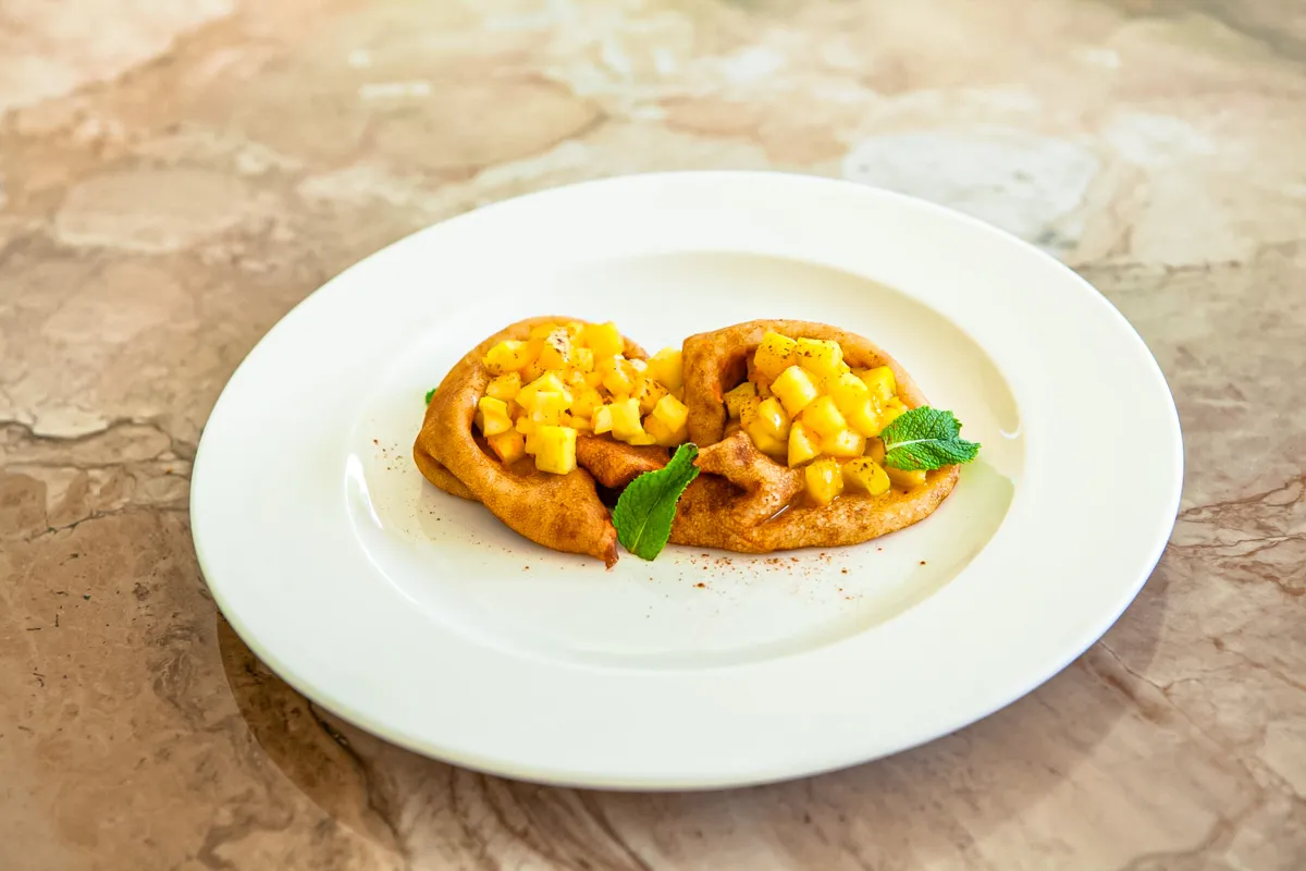 Питание в отеле «Понтос Плаза» г. Ессентуки организовано в ресторане гостиницы. Отдыхающие смогут выбрать между полным пансионом и только завтраками. Каждое утро с 8:00 до 11:00 в ресторане накрывается завтрак. На выбор предлагается несколько вариантов блюд. Здесь есть несколько вариантов каш на молоке или воде, блюда из яиц, блинчики, сырники, йогурты, сэндвичи и круассаны с разными наполнителями. Из напитков представлены чай, чёрный и зелёный кофе, сок и минеральная вода.
