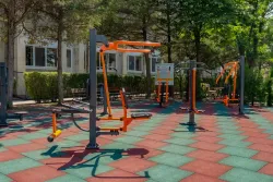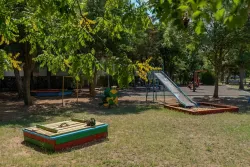 • Для детей построена современная и полностью безопасная детская площадка с различными игровыми снарядами.