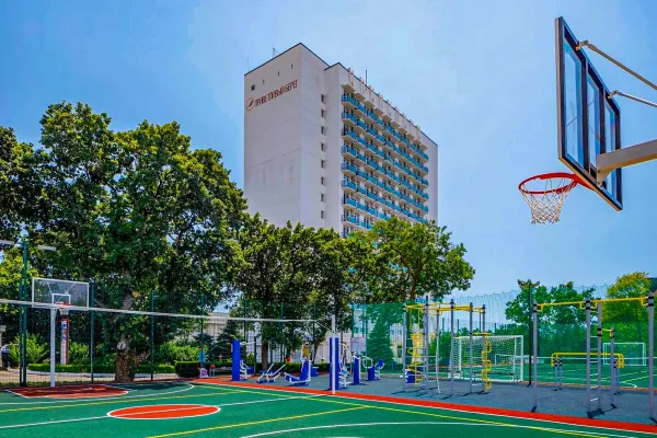 На территории пансионата оборудована волейбольная площадка, игровое пространство для детей и их родителей. Ежедневно аниматоры проводят утреннюю зарядку для всех желающих, днём можно поучаствовать в конкурсах талантов и мастер-классах. Вечером для гостей организуют дискотеки. Поехать на экскурсию по местным достопримечательностям можно будет прямо из пансионата. Экскурсионное бюро поможет вам выбрать маршрут и организует безопасную поездку с комфортом.