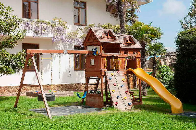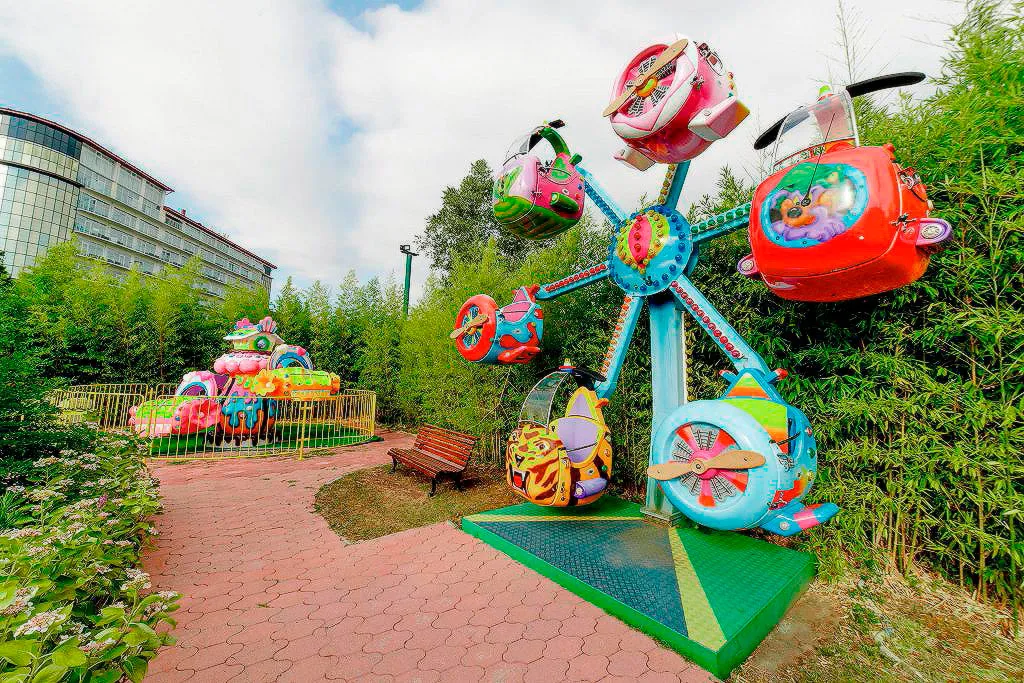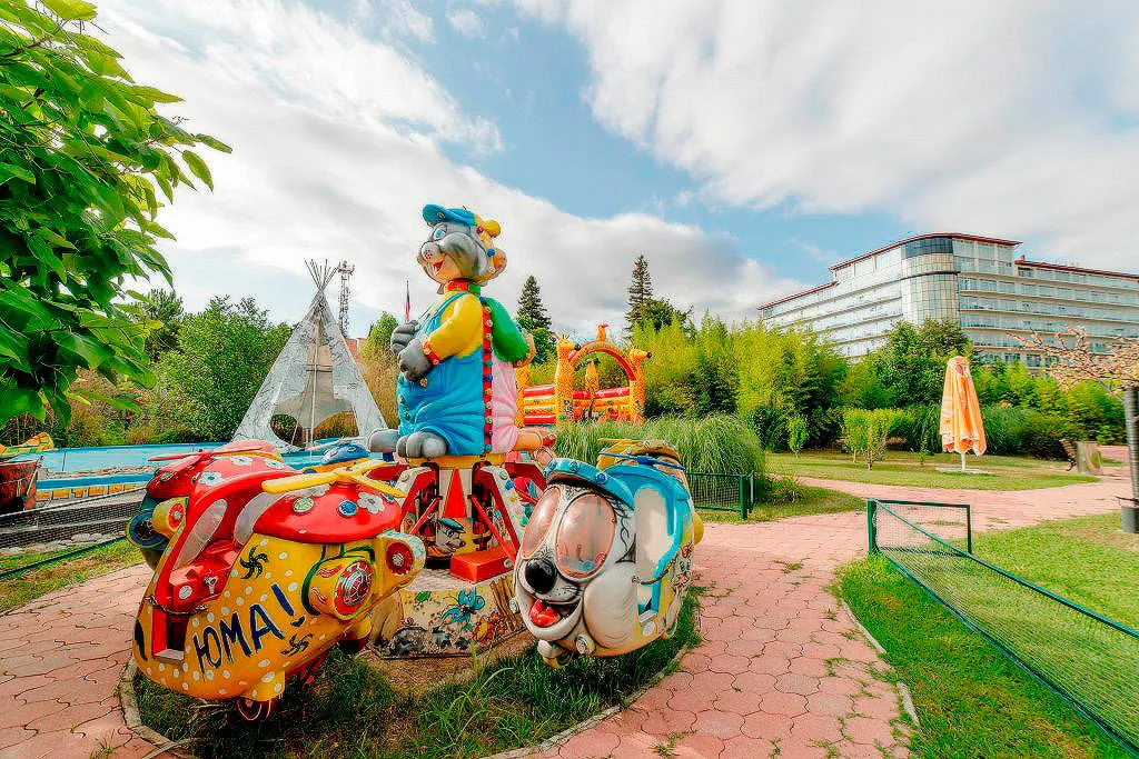 На территории «Прометей Клуба» действует аквапарк с бассейнами с пресной и морской водой, оборудован лунапарк с аттракционами. Специально для детей в отеле работает детский ресторан с диетическим меню. Ваш ребёнок сможет выбрать здесь десерты, творожки, пюре, соки, полезные десерты. По запросу будут предоставлены кроватки в номер.