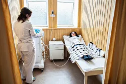 Санаторий «Радуга» специализируется на лечении разного рода заболеваний. Лечебный корпус оснащен новейшим современным оборудованием (Магнитотурботрон, Криосауна, Галокамера с гималайской солью, Лечебное распыление янтаря, Барокамера, ВЛОК, Карбокситерапия, Душ Виши+СПА, урологический аппарат «Авантрон», Электросон, Лимфопрессотерапия, Биоритм-стимуляция). Благодаря обширной терапевтической базе и современному медицинскому оборудованию профилактория каждый найдёт для себя подходящую программу по оздоровлению. Опытный врач-терапевт предоставит вам консультацию и выработает персональный курс, подходящий именно вам, чтобы вы смогли получить максимальную пользу от отдыха.