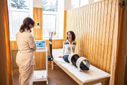 Санаторий «Радуга» в Кисловодске предлагает большой выбор эффективных расслабляющих SPA-процедур. Такие процедуры помогут превратить процесс лечения в райское наслаждение. Вы сможете в полной мере забыть про стресс, усталость, угнетенное настроение и рабочие будни После посещения SPA-салона в санатории ваша кожа омолодится, улучшится обмен веществ и циркуляция крови, восстановится сон. К тому же такой вид отдыха хорошо помогает расслабиться и восстановить психоэмоциональный фон. Опытный врач поможет подобрать подходящую программу по результатам консультации, исходя из ваших предпочтений и противопоказаний. Каждый сеанс проводится квалифицированным специалистом. В списке процедур числятся кедровая бочка, инфракрасная сауна, грязевые и минеральные ванны, профессиональный массаж, душ Виши и обёртывания.