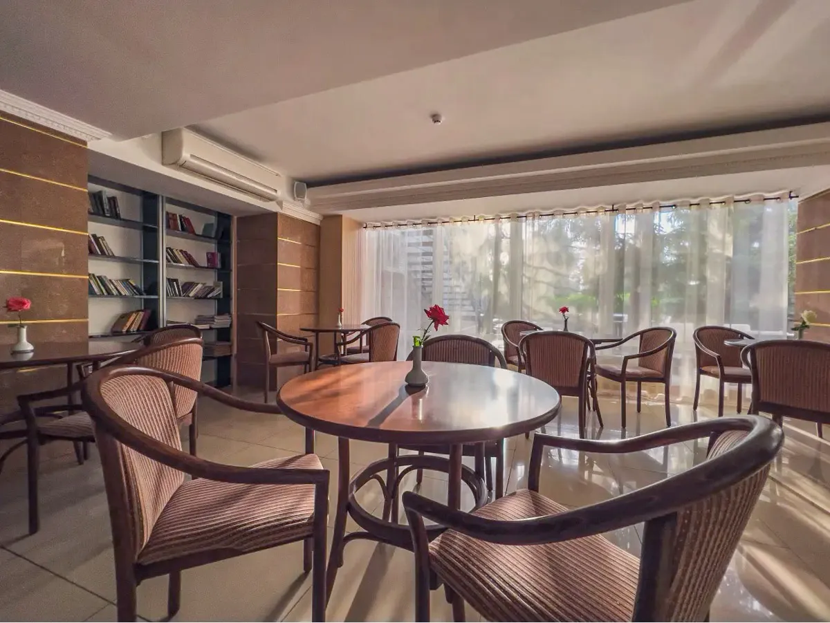 Лобби-бар оформлен в классическом стиле. Здесь подаются коктейли, элитные напитки, а также чай, кофе.