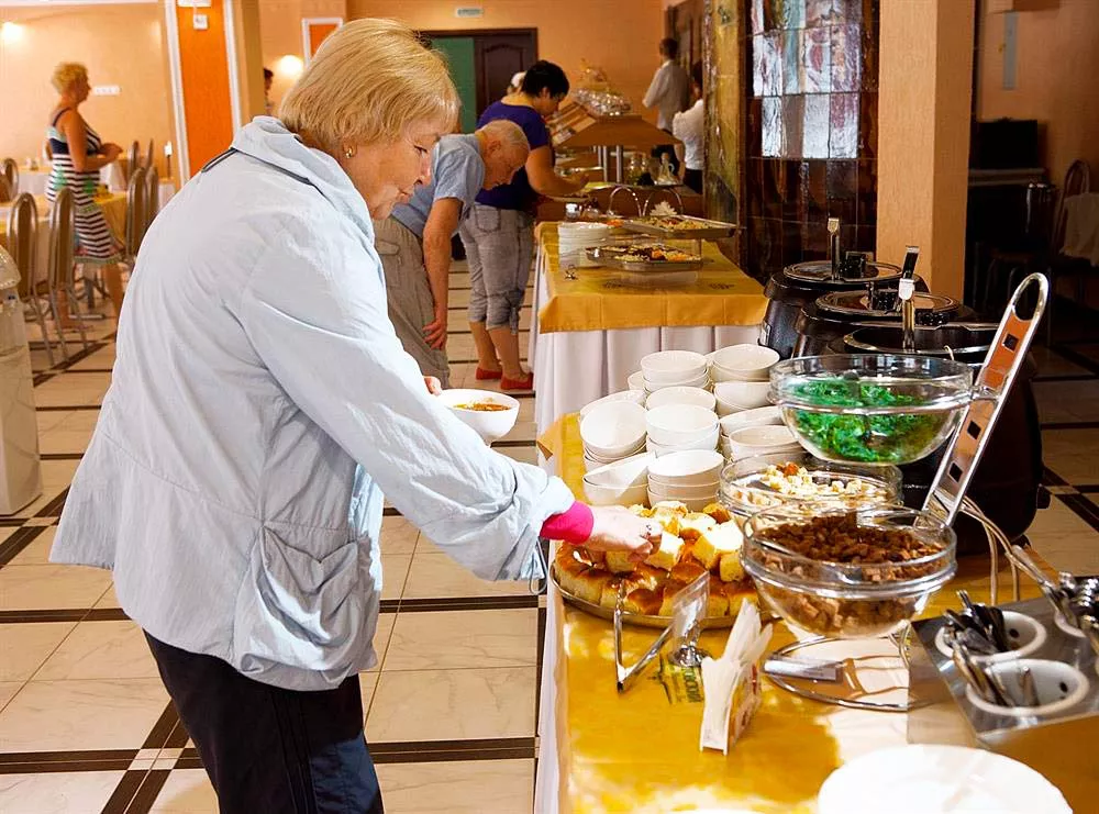 Путевка в санаторий Анапы «Родник» включает в себя сбалансированное питание по системе «шведский стол» – отдыхающим предоставляется широкий выбор блюд с ассортиментом в каждой из категорий. Также в здравнице действует формат заказного меню, что является оптимальным решением для взыскательных гостей с повышенными требованиями к пище. Еда на заказ полагается и тем, кто приобрел путевку через фонды социального страхования. В данном случае выбор предпочтительных блюд осуществляется накануне с расчетом полноценного питания на предстоящий день. Заказное меню содержит традиционные блюда с диетическим уклоном.