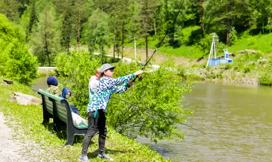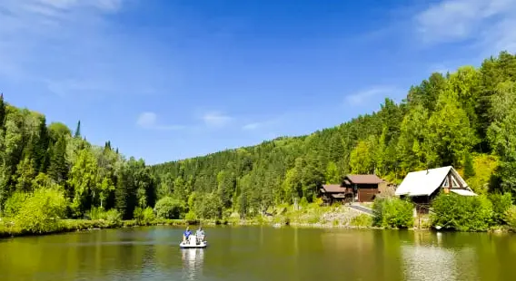 Рядом есть все условия для гармоничного и полезного отдыха: озеро для рыбалки и катаний на лодке, шезлонги для загара, баня для релаксации, игровой городок для досуга детей. Продумано и питание – ресторан на берегу водоема предлагает алтайское меню. Также есть возможность самостоятельно пожарить шашлыки в беседках с мангальными зонами.