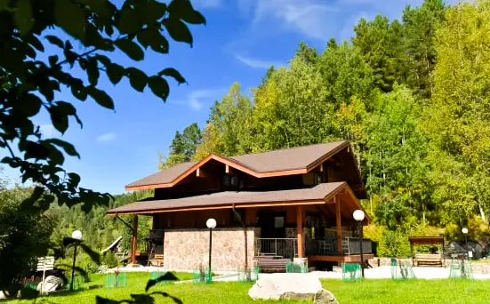 Чтобы ее найти, нужно пойти к Круглой горе, следовать мимо Солнечной поляны и ехать дальше по горным хребтам Белокурихи. Когда лес расступится в ущелье, на поляне можно увидеть уютные домики – избы с деревенским оформлением и печью, коттеджи в стиле шале и мини-отели в виде загородного дома. Все они предоставляются для размещения туристов.