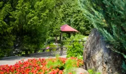Здравница скрывается от шумных магистралей за горным отрогом. На территории санатория площадью 8.4 га протекает Медвежий ручей и произрастают пышные перелески. На курорте создана современная инфраструктура с прогулочными дорожками, фонтанами, беседками, скамейками и качелями. В шаговой доступности от корпусов находятся кафе и рестораны, ярмарка, торговый центр, исторические и архитектурные достопримечательности. Например, у въезда в санаторий, на холме возвышается храм святителя и чудотворца Николая. Гостям рекомендуется посетить еще один интересный объект – таёжную заимку.