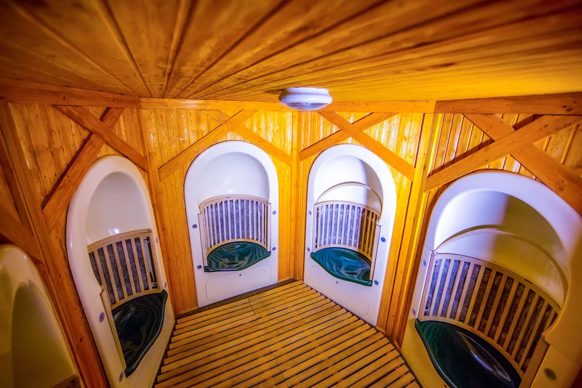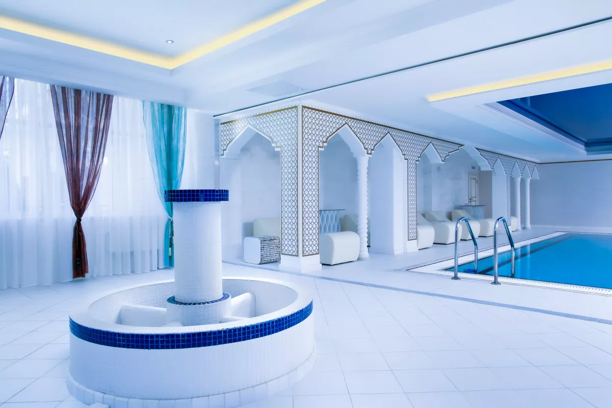 Одним из самых расслабляющих мест в акватермальном комплексе санатория «Русь» в г. Ессентуки является восточная баня, или турецкий хамам. Температура в парной находится в пределах 50 °C, а влажность доходит до 100%. Такие условия комфортны для организма человека и способствуют полноценному расслаблению, поэтому находиться в хаммаме можно довольно долго.