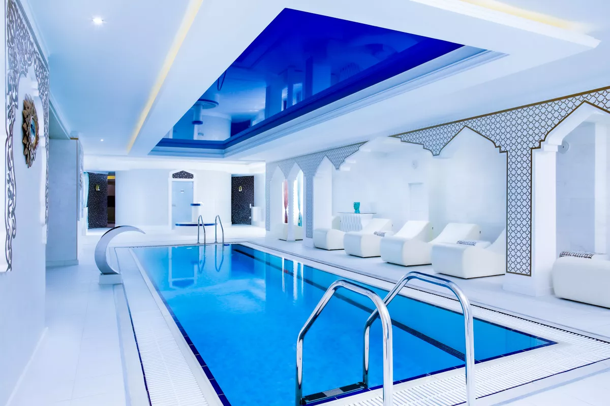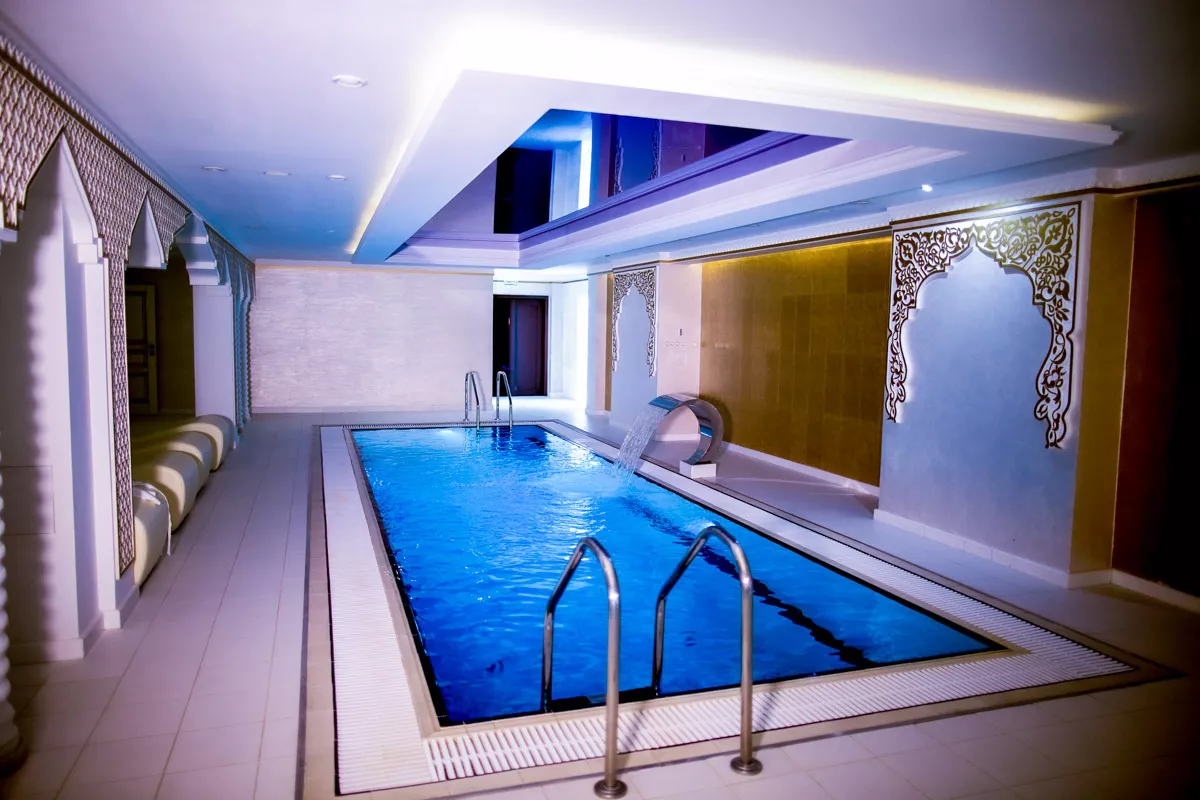 В санатории «Русь» в г. Ессентуки есть просторный крытый бассейн с подогретой водой, температура которой составляет +27-29 °C. Общая площадь поверхности для плавания составляет 652 кв.м. Взрослые могут выбрать для себя наиболее подходящую зону для отдыха, поскольку бассейн имеет несколько уровней глубины (от 300 см до 1,8 м) и отдельные участки с дополнительными возможностями: каскад, джакузи и эффект морской волны. Для малышей предусмотрен свой бассейн, где температура воды составляет +32 °C.