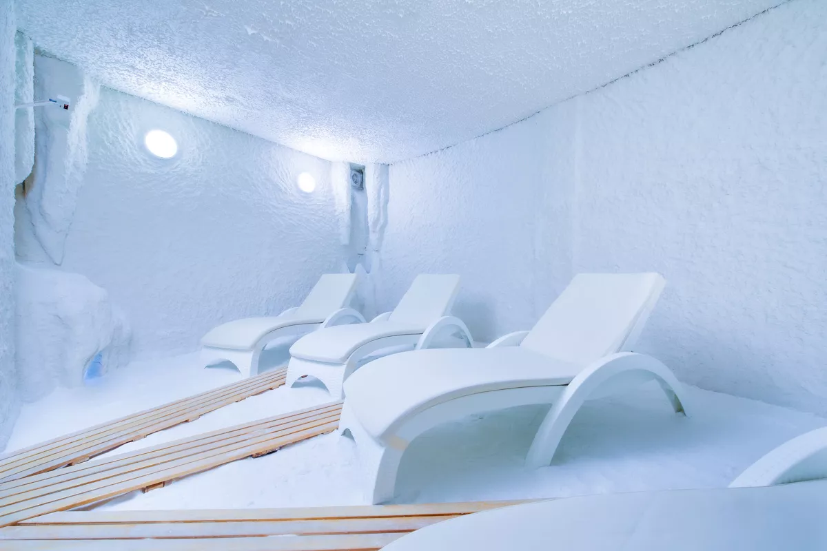Финская сауна по своему действию напоминает русскую баню, но отличается от нее пониженной влажностью (менее 20%). Температура внутри может доходить до +100 °C. Благодаря быстрому испарению пота с тела человека перегрева не происходит, поэтому нахождение в сауне безопасно, если у гостя нет противопоказаний. Сауна в здравнице оборудована комфортными деревянными лежаками, эстетичными светильниками, горячими камнями, комфортными раздевалками — всё выполнено в лучших финских традициях. Внутри помещения имеется термостат для контроля за температурой и ее удобной регулировкой. Также рядом с сауной находится бассейн, чтобы окунаться в прохладную воду и закалять организм.