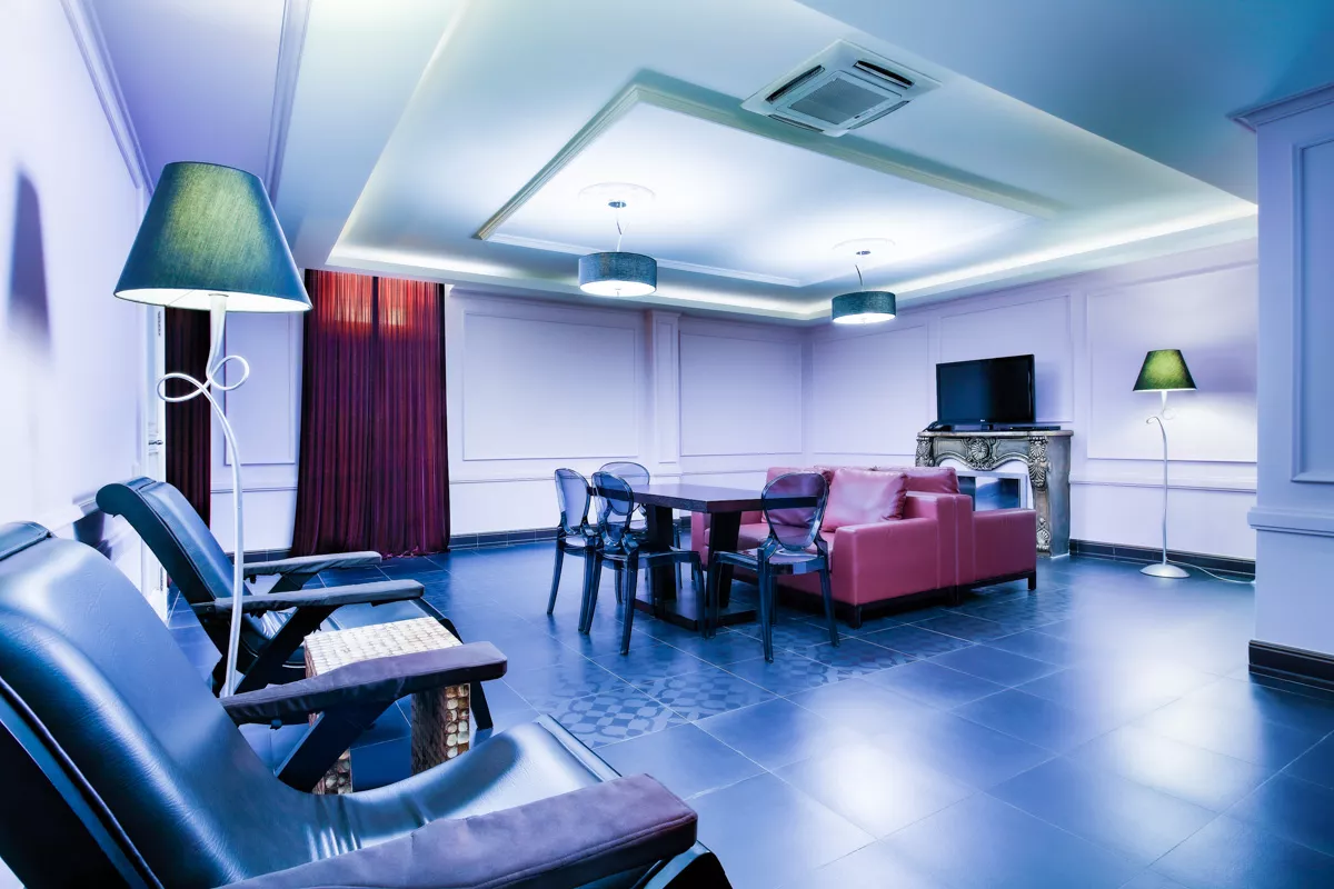 Одновременно в санатории могут отдыхать до 800 человек. В апартаментах со стильным интерьером установлена современная мебель и функциональная бытовая техника — телевизор, кондиционер и фен. Также в номерах предусмотрены ванна и туалет, персональные банные принадлежности, сейф, мини-бар и кроватка для малыша (по запросу). Во всем санатории работает бесплатный Wi-Fi.