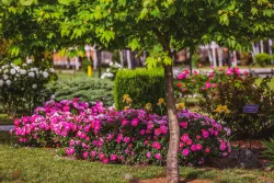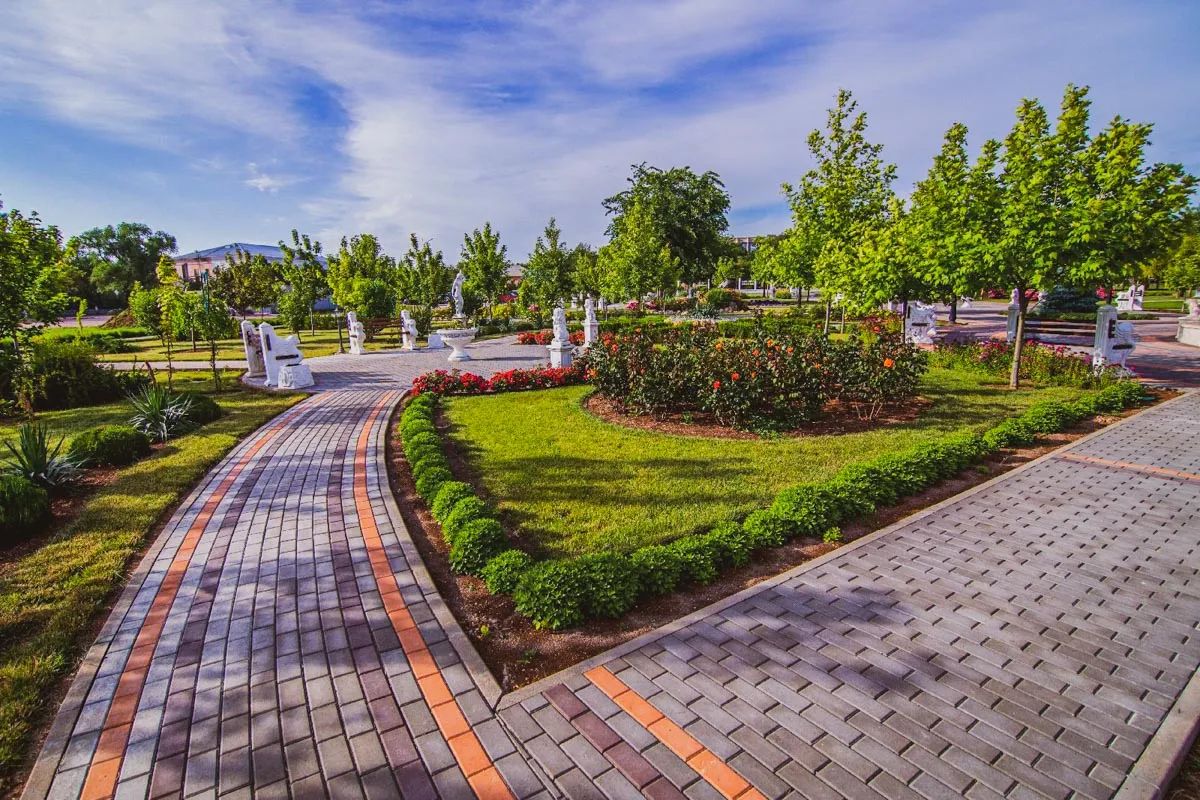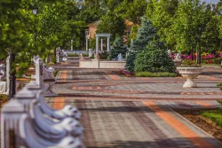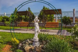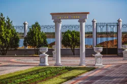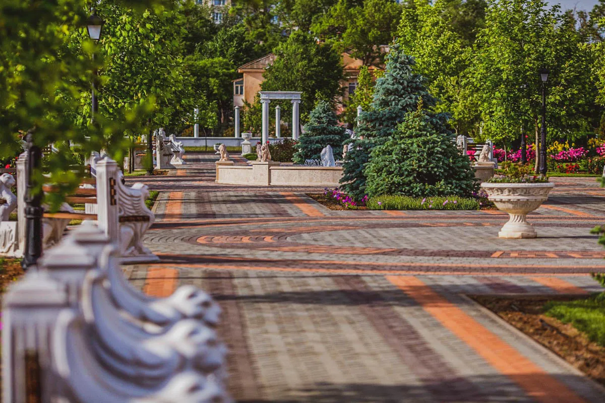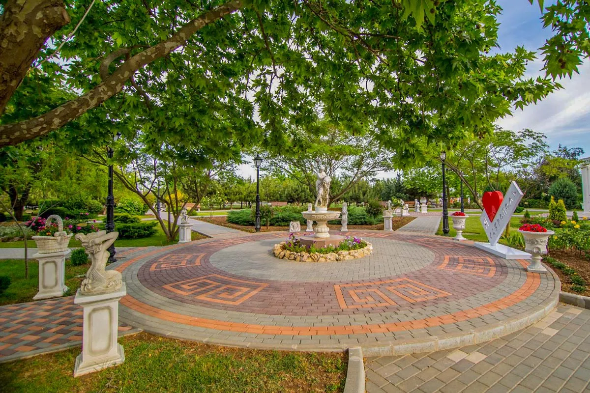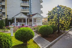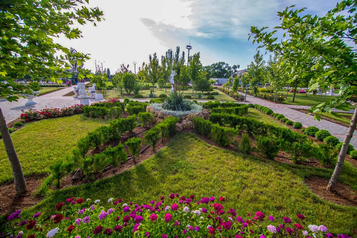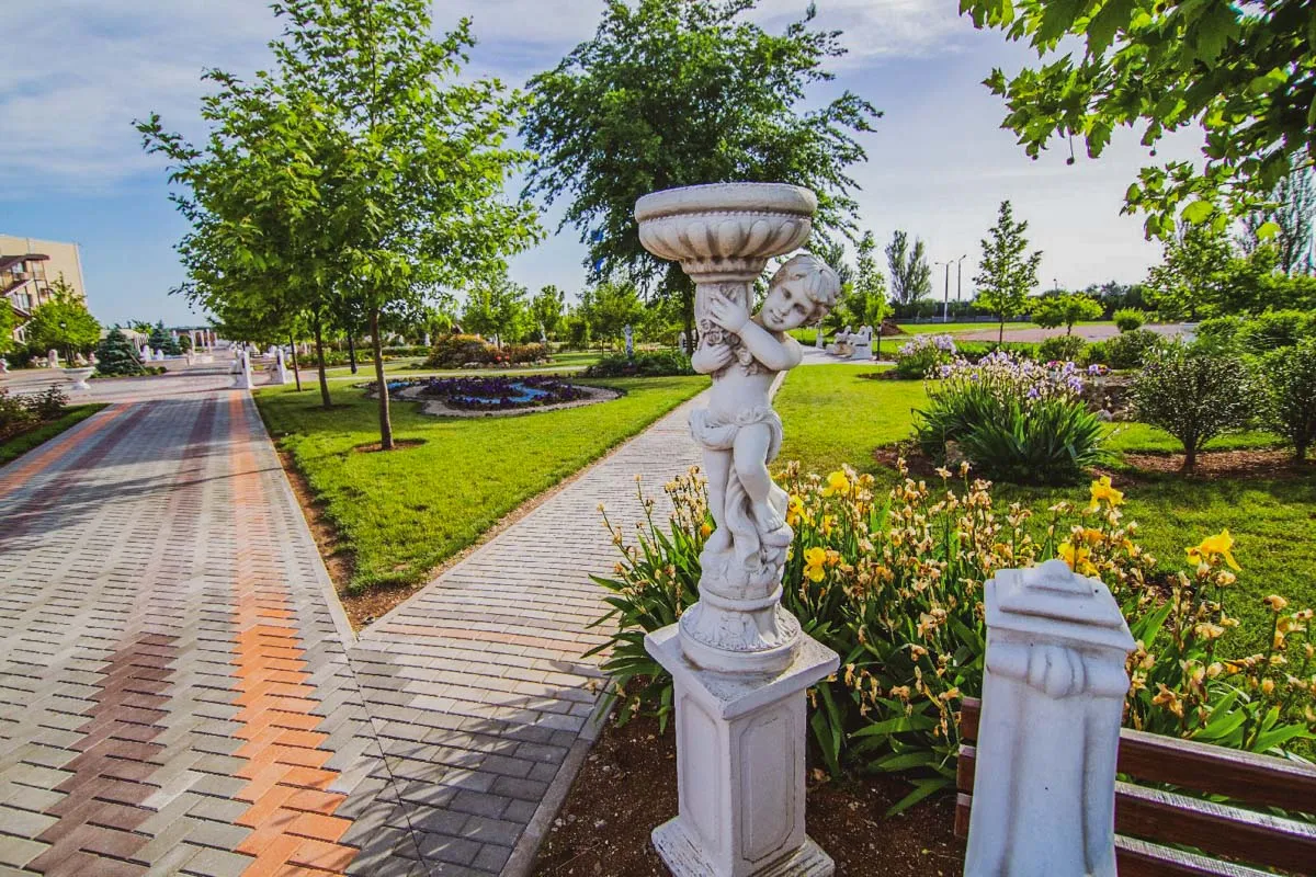Также заведение со всех сторон окружено шестью гектарами прекрасных южных растений, высаженных в парк с тенистыми аллеями и площадками с яркими клумбами.