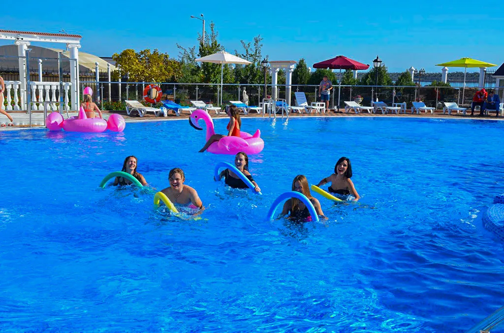 • Бассейн с подогревом, работающий в тёплое время года, а также в межсезонье при хорошей погоде.