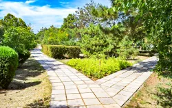 Территория пансионата просторная и ухоженная. Кроме собственного песчаного пляжа в распоряжении отдыхающих находится большой парк с экзотическими и другими эксклюзивными растениями, футбольное поле и лечебный бассейн с термальной водой.