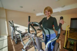 В санатории функционирует большой крытый бассейн. Вода в бассейне чистая, безопасная. Бассейн с подогревом. Гости могут заниматься свободным плаванием или записаться на групповые занятия аквааэробикой.