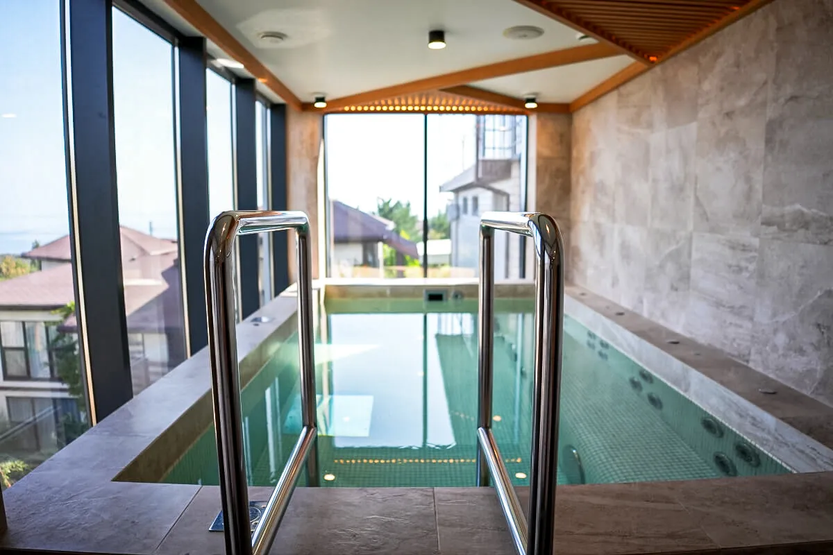 Также к объектам СПА-зоны относят панорамный бассейн-джакузи, соляная лаундж-зона, душ-водопад, в котором можно охладиться после термальных процедур.