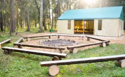 Но и это ещё не все варианты проживания. Можно заселиться в один из пяти кемпингов. Гостей для отличного отдыха встретят одноэтажные деревянные здания, расположенные прямо в сосновом бору. Свой автомобиль можно оставить на охраняемой парковке. А шашлычная зона позволит отлично провести время.