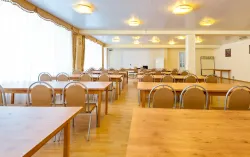 В пансионате «Солнечная поляна» в Подмосковье вопрос питания имеет очень важное значение, так как здесь применяется специальная диетотерапия, позволяющая нормализовать работу ЖКТ и избавиться от лишнего веса. Помещение ресторана рассчитано на одновременный приём 270 человек. Большой красиво оформленный зал приглашает гостей к посещению в течение двенадцати часов в сутки: с девяти до девяти.