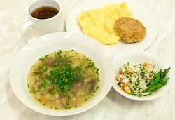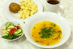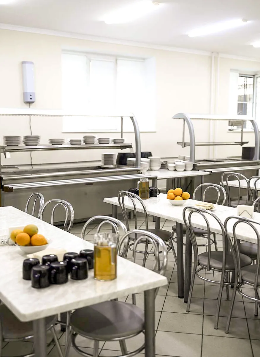Для гостей санатория «Сосны» в Подмосковье организовано питание в столовой. Питание четырехразовое. Предлагается большой выбор блюд в рамках диетических столов, назначенных врачом каждому пациенту индивидуально.