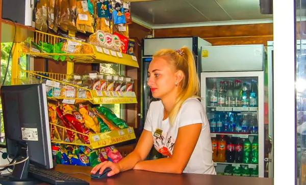 При отсутствии соответствующих атрибутов для пикника, гости пансионата могут приобрести их в туристическом мини-маркете. Там в наличии всегда есть жидкость для розжига, уголь, решетки для гриля, шпажки, одноразовая посуда, салфетки и скатерти.