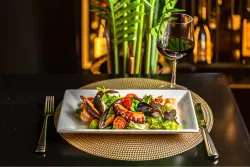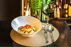 В отеле «Tizdar Family Resort & Spa» Темрюкского района открыто несколько кафе, ресторанов, а также блинная, шашлычная и чебуречная. У бассейна действует бар, где можно заказать напитки, закуски и десерты. При выборе 3-разового питания в гостинице вы сможете воспользоваться системой «шведский стол». Помимо завтрака, обеда и ужина в течение дня вам будут предлагаться такие закуски, как пицца, хот-доги, выпечка, мороженое. Кроме этого вам будут доступны алкогольные и безалкогольные напитки в барах и ресторане отеля.