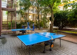 Те, кто предпочитает проводить свой день в максимальной активности, здесь обустроили несколько спортивных мест. В том числе для игры в настольный теннис и большие садовые шахматы. Для спортсменов и тех, кому нужно поддерживать физическую форму оборудована тренажёрная площадка. Также доступен прокат велосипедов и роликов, что позволяет исследовать окрестности и наслаждаться природой Крыма. Для тех, кто предпочитает спокойный отдых, на территории есть места для пикников и мангальная зона, где можно приготовить шашлык и насладиться отдыхом на свежем воздухе.