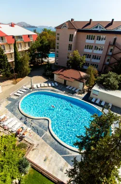Развитая инфраструктура обеспечит комфортный отдых: столовая с современной системой питания в двух вариантах («шведский стол» или «комплексное меню»), парковка, два подогреваемых бассейна (с детскими зонами) и многое другое.