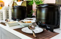 Вкусное разнообразное питание только из свежих продуктов станет не только приятным дополнением к отдыху в пансионате «Творческая волна» в Коктебеле, но и необходимой подпиткой энергии для новых приключений. Система организована таким образом, чтобы удовлетворить вкусы и потребности каждого гостя. Основное меню предоставляется в уютной и просторной столовой, оформленной в современном стиле. Светлые тона и просторное помещение позволит насладиться каждым кусочком в уютной обстановке.