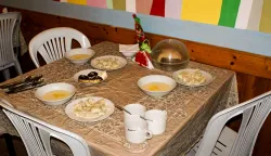 В пансионате готовят по-домашнему. В меню представлены первые блюда, разнообразные гарниры, очень вкусная выпечка и десерты, блюда из мяса и рыбы, свежие овощи, огромный ассортимент фруктов и многое другое.