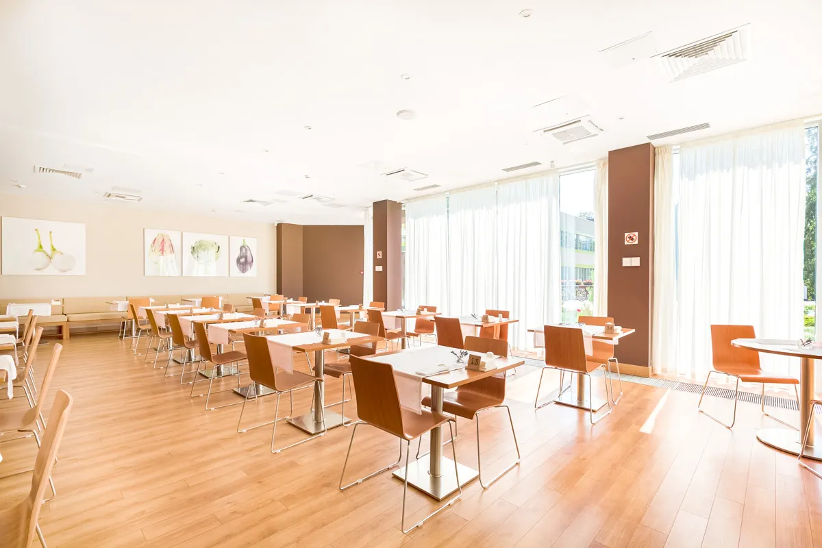 Для завтрака, обеда и ужина предназначено определённое время – приходить нужно по расписанию. Выбор блюд происходит по меню, включающему сезонные позиции, а также те блюда, которые рекомендованы в данном конкретном случае.