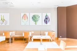 Ресторан санатория «Verba Mayr» обеспечивает отдыхающих здоровым питанием, используя при приготовлении лёгкие продукты, не вызывающие вздутия, с хорошо усваиваемым белком и отсутствием аллергических реакций. Именно поэтому в здравнице есть собственные производства, позволяющие исключить глютен, сахар и лактозу. Также при приготовлении пищи не используется еда с длительным сроком хранения, так как в ней содержится множество консервантов и других вредных компонентов. Только свежие качественные продукты помогут улучшить работу желудочно-кишечного тракта. В результате все гости заведения получают такие потрясающие эффекты, как очищение кожи и улучшение работы всех органов.