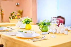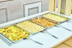 В ВИП корпусе питание для проживающих организовано на цокольном этаже корпуса по заказному ресторанному меню. По рекомендации врачей разработано диетическое питание – низкокалорийная, щадящая и основная диета.